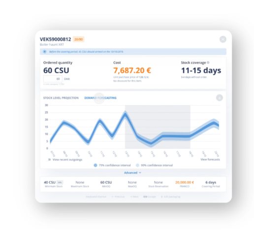 La technologie de Vekia génère des prévisions probabilistes sur la demande, les délais de livraison et les niveaux de stock. Ces prévisions permettent d’anticiper les variations, d’ajuster les stocks de sécurité, et de planifier les approvisionnements de manière optimale pour éviter les ruptures et réduire les coûts de surstock. Grâce à cette approche, chaque décision est alignée avec les conditions réelles et prévisibles du marché.